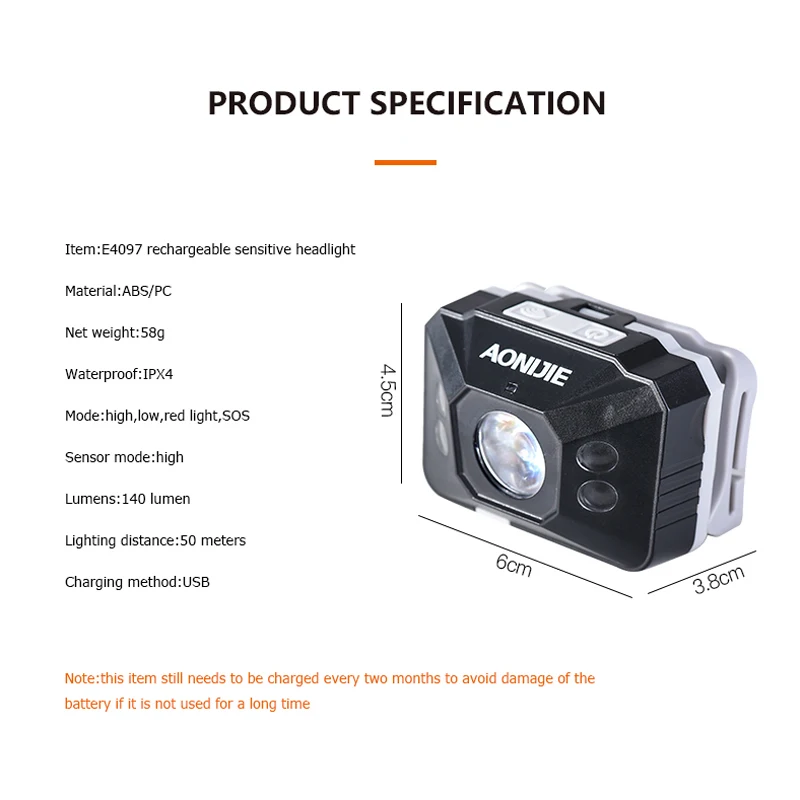 .image for AONIJIE E4097 Waterproof Rechargeable Sensitive LED Headlight Headlamp Flashlight Light Running Fis