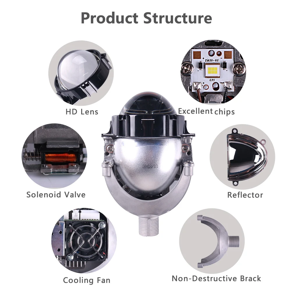 .image for Sanvi Super Bright Car LED Headlights 35W 5500K High Low Beam Car-styling Auto Bi LED Projector Len